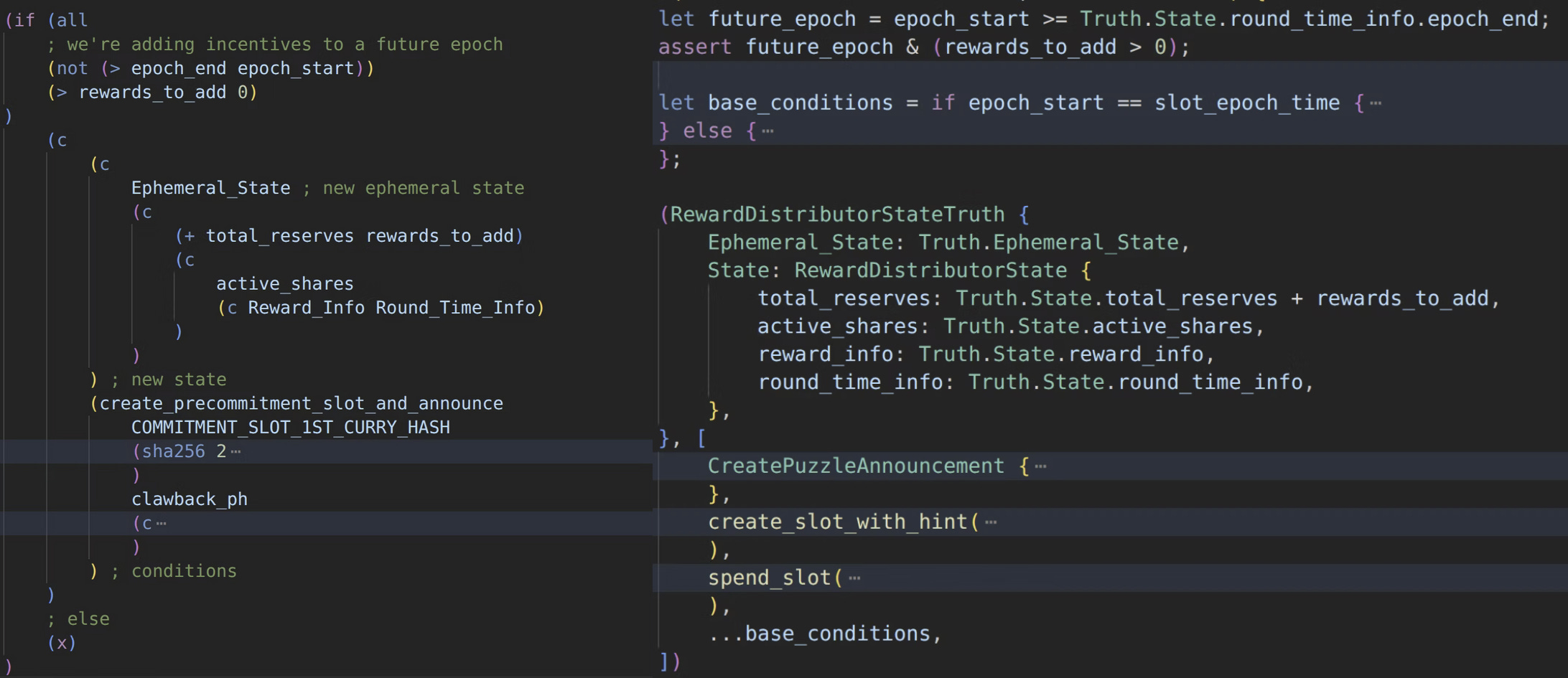 Another aspect is how syntax makes developers think and consider attack scenarios. An example from other ecosystems is Solidity, where re-entrancy vulnerabilities are easy to introduce if you’re not aware of them. I think that the architecture of the Chia blockchain inherently makes developers consider side-effects the same way for both languages, as they’re are all determined in the output condition list (e.g., create a coin).